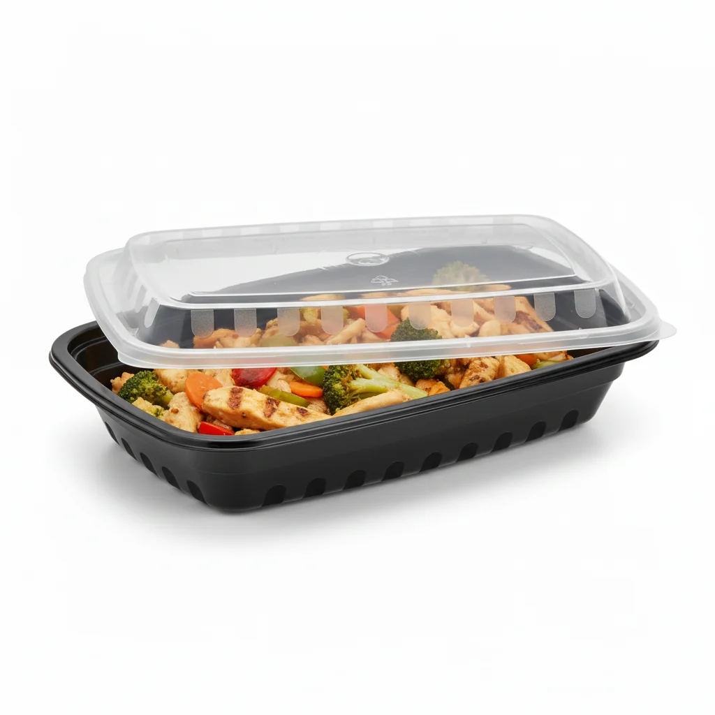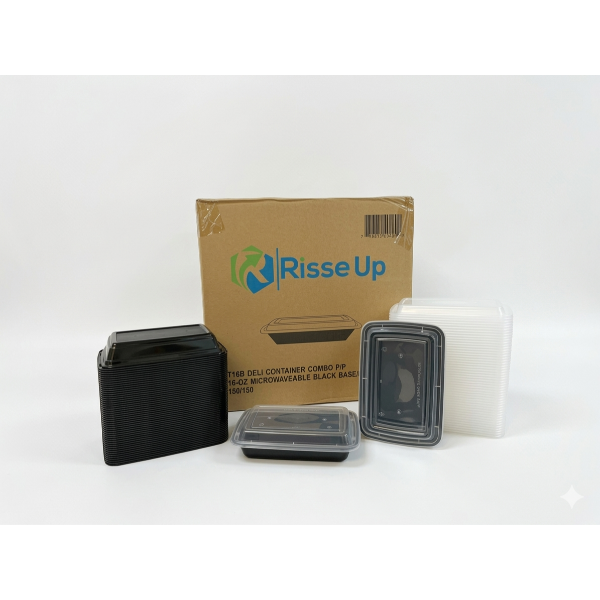 The Risseup 16 Oz Black PP Plastic Rectangular Container with Clear Lid is designed for strength, convenience, and presentation. Made from premium polypropylene (PP), the black base offers durability, crack resistance, and a sleek professional look. The clear PET lid provides a secure, leak-resistant seal while allowing easy visibility of contents. With a 16-ounce capacity, this container is ideal for storing, serving, and transporting meals, sides, salads, and snacks. Lightweight yet sturdy, it is disposable, hygienic, and suitable for catering, restaurants, and takeout services. The combination of a stylish black base and transparent lid ensures freshness, spill prevention, and reliable performance in both commercial and retail food packaging.